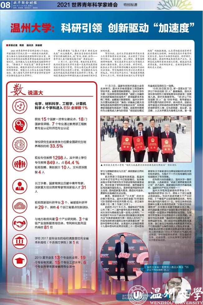 与此同时,欧华联合时报特推出《2021世界青年科学家峰会》特刊,紧紧围绕峰会主题,用整整16个版面,回顾前两届世界青年科学家峰会的成功举行,各项落地开花的成果,为温州发展激发源源不断的创新动力。更重要的是,聚焦本届活动的各项创新与亮点,讲好“办好一个会,赋能一座城”的创新故事。