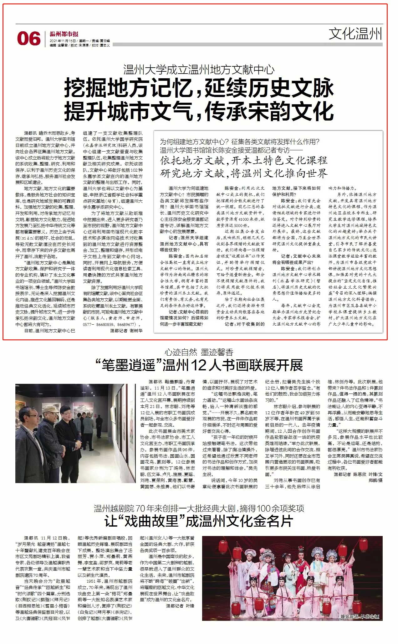 陈安金:国内知名综合性高校一直有成立地方文献中心的传统。香蕉视频 作为浙南闽北赣东的综合性大学,拥有丰富的图书馆藏,其中包括了大批珍贵的温州本土文献。我们有责任、有义务,也有充足的条件来办好这件事。