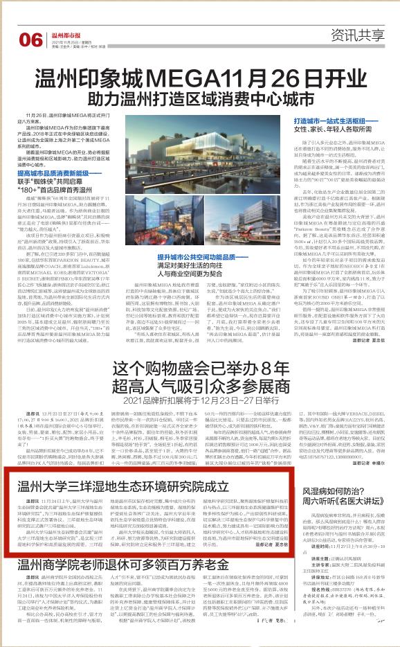 11月24日上午,香蕉视频 与温州生态园管委会就共建“香蕉视频 三垟湿地生态环境研究院”,为三垟湿地生态保护修复提供科技支撑正式签署协议。三垟湿地生态环境研究院正式落户三垟湿地公园。