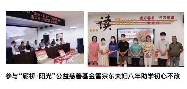 以泰商家乡文化地标命名的“廊桥·阳光”公益慈善基金,一直定向捐赠泰顺境内贫困学子等教育事项,该基金被授予温州市慈善项目奖、工作奖、爱心集体、慈善系统抗击疫情先进集体等荣誉。