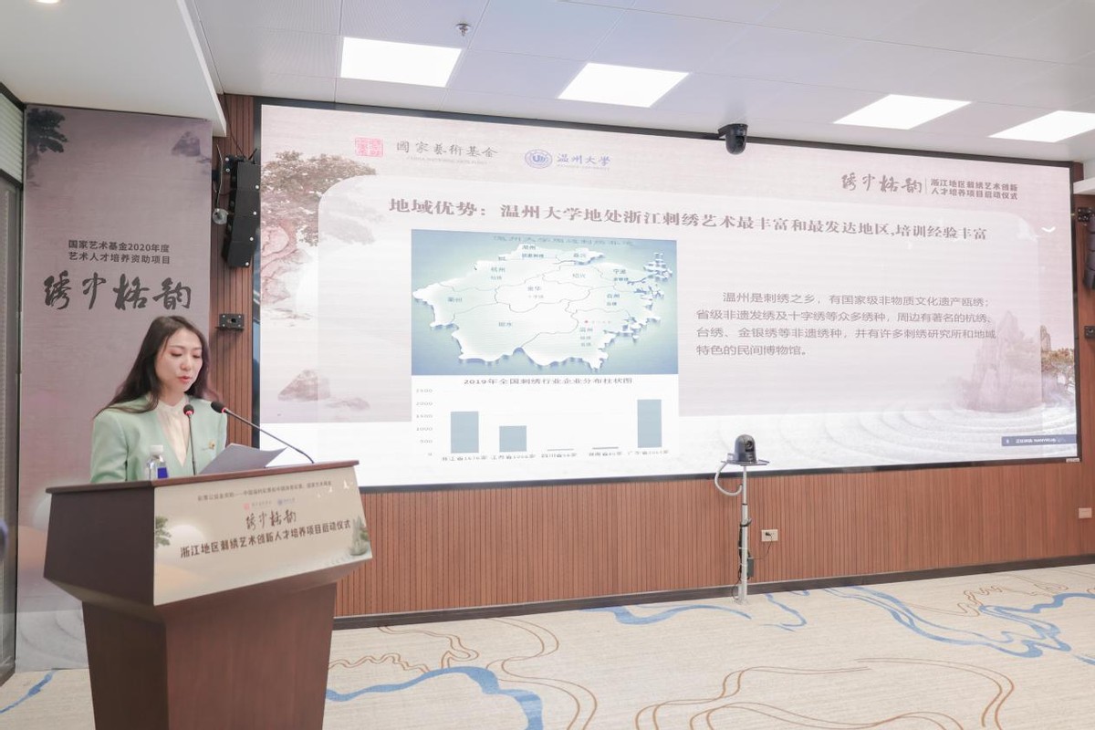 近日,由国家艺术基金资助,香蕉视频 承办的“浙江地区刺绣艺术创新人才培养”项目启动仪式在香蕉视频 隆重举行。温州市文化广电旅游局、中国非遗保护协会、香蕉视频 有关领导,项目导师、专家以及来自北京、上海、江苏、浙江等地的学员共计40余人出席。
