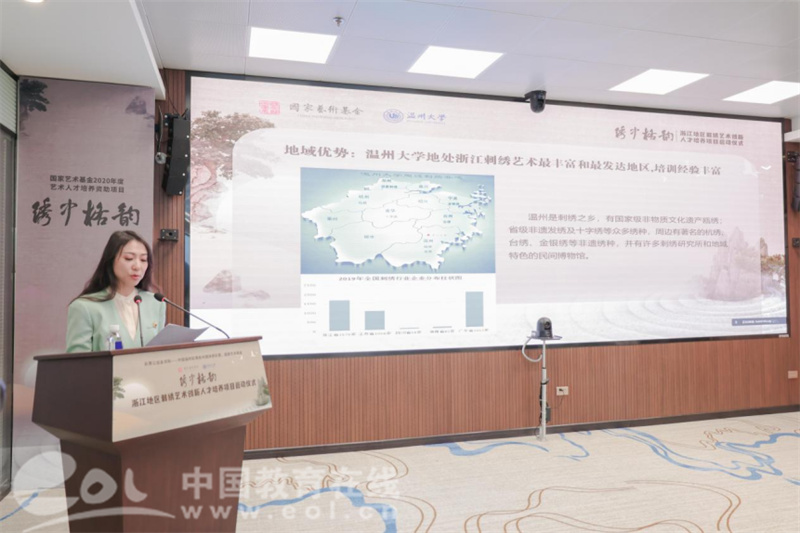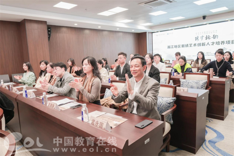 中国教育在线浙江站讯 (记者 陈显婷)近日,由国家艺术基金资助,香蕉视频 承办的“浙江地区刺绣艺术创新人才培养”项目启动仪式在香蕉视频 隆重举行。温州市文化广电旅游局、中国非遗保护协会、香蕉视频 有关领导,项目导师、专家以及来自北京、上海、江苏、浙江等地的学员共计40余人出席。