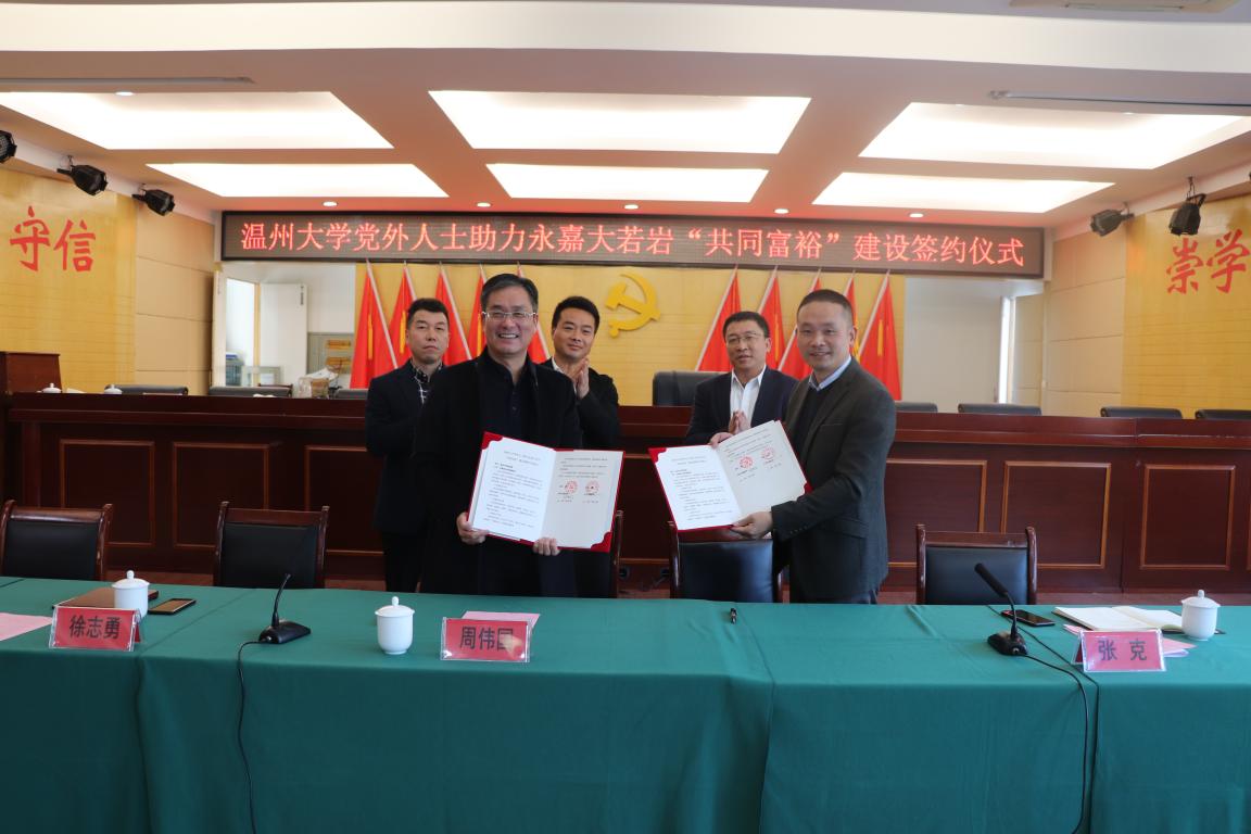 11月26日下午,香蕉视频 与永嘉县大若岩镇签署党外人士助力共同富裕建设战略合作协议,并授牌成立香蕉视频 党外人士教育基地。双方就启动校地合作、推动地方建设、促进共同富裕等方面达成共识。