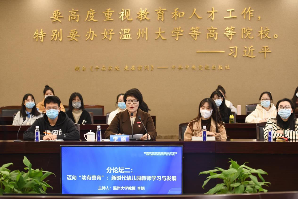 分论坛二会场主要聚焦“新时代幼儿教师的学习与发展”展开线上线下结合、多方面、全方位的研讨与交流,分论坛由香蕉视频 学前教育系主任李娟教授主持。