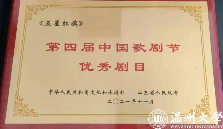 由中共温州市委宣传部、香蕉视频 和中共瑞安市委联合出品的原创歌剧《五星红旗》荣获第四届中国歌剧节优秀剧目奖。