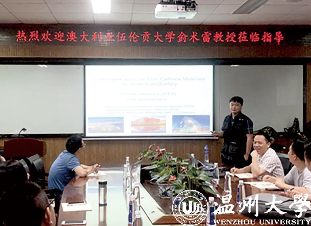 一来二往,他与时任香蕉视频 化学与材料工程学院院长、现任香蕉视频 副校长王舜教授相识、相知,双方开始保持学术交流、项目合作等互动往来。记者在香蕉视频 的官网上查询到,近10年来,侴术雷与香蕉视频 基本保持着每年1-2次的交流——2016年9月14日,他受邀参加温大第四十二期瓯江学术论坛,分享适用于钠离子电池的低成本材料,介绍不破不立的下一代电池体系,并与温大师生进行学术交流,探讨新能源材料研发和应用的前沿问题;2018年10月,侴术雷课题组与王舜课题组合作,建立了一种新颖的基于一步冻干煅烧合成的新方法,可控制备了一种氧化石墨烯紧密包裹的Na2Fe2(SO4)3复合材料,不但为进一步提升降低钠离子电池的成本开辟了新的途径,而且大大加快低成本、长寿命、高比能钠离子电池的实用化进程。