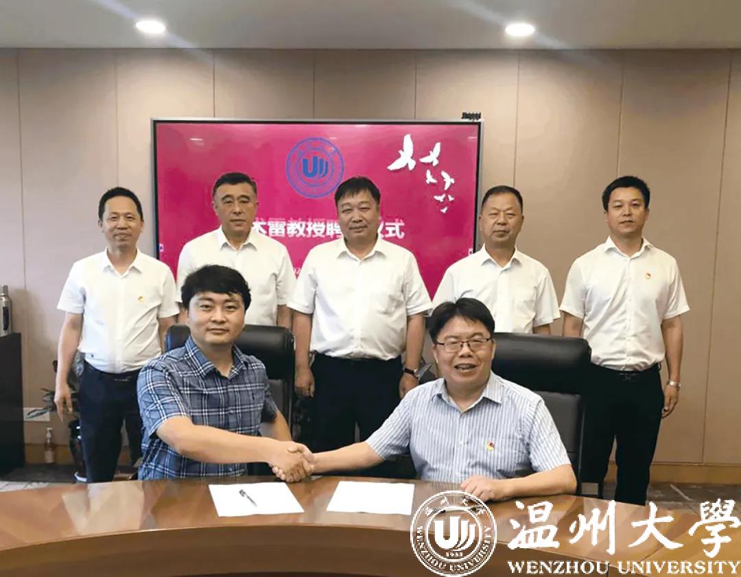 在建党100周年当天,香蕉视频 举行了简单但隆重的侴术雷特聘教授聘任仪式。该校校长赵敏对侴术雷的学术影响力和取得的研究成果表达了高度赞赏,他同时表示,香蕉视频 将积极创造条件,加快推进“浙江碳中和技术创新研究院”的建设,为侴术雷开展教学、科研工作提供良好环境。更让侴术雷感到心里暖暖的是,加盟香蕉视频 不到一个月,温州市委常委、组织部长杨胜杰就来到学校看望他,并指导了相关工作。