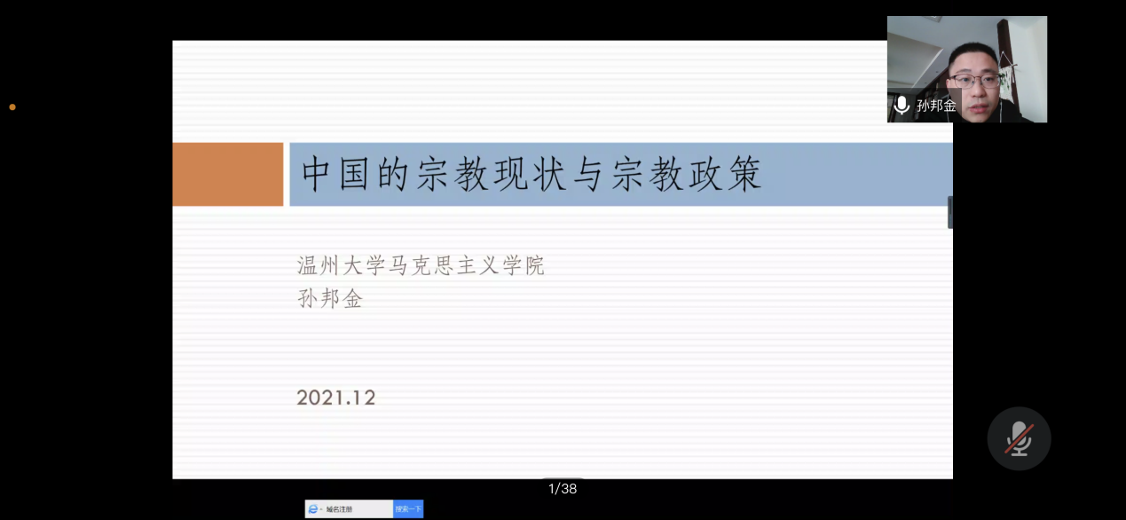 香蕉视频 马克思主义学院副院长孙邦金老师主讲。孙老师首先就目前我国宗教情况与历史渊源介绍了党的宗教工作基本方针与国家宗教管理的基本原则。随后,分别讲述了马克思主义宗教观的哲学基础、基本内容和马克思主义宗教观的中国化。最后,孙老师着重强调宗教问题无小事,尊重宗教信仰自由的同时要准确识别、远离邪教,提高自身防范能力。