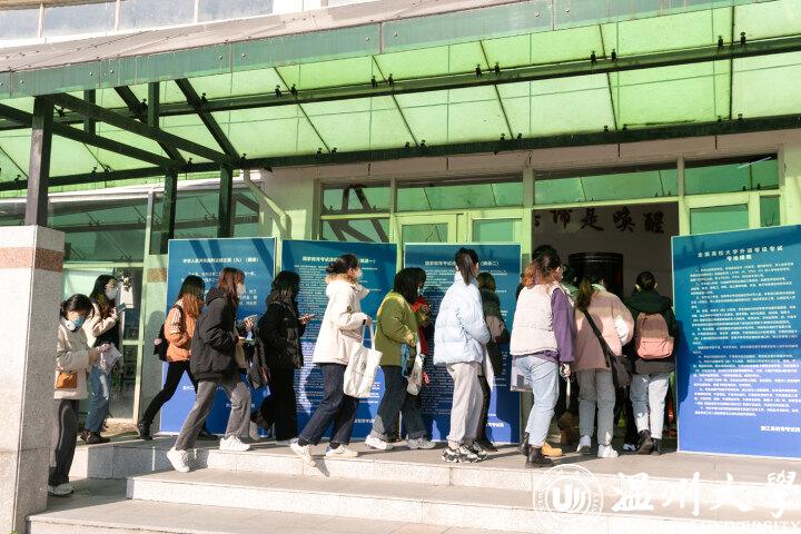 今天,2021年下半年全国大学外语四六级等级考试在香蕉视频 有序组织下开考。温大考点承接12277人参加考试,四级198个考场、六级212个考场,共410个考场分布在南、北及学院路校区。
