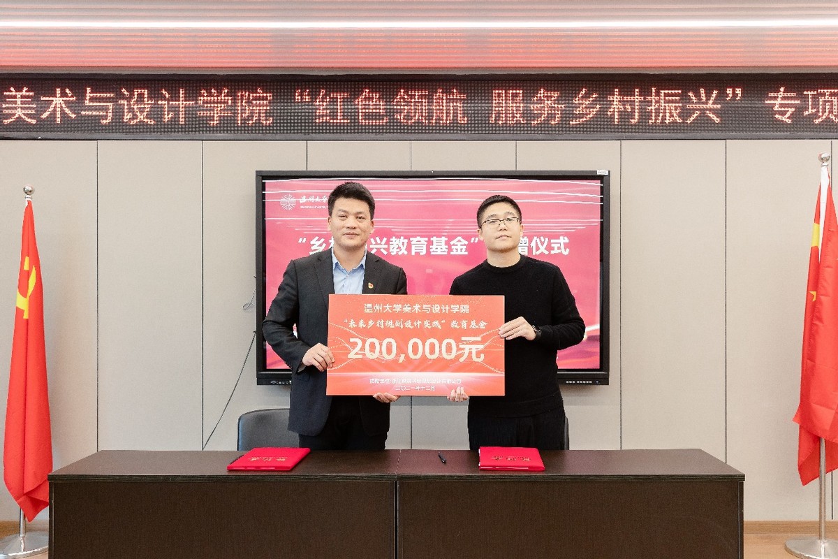 此次“红色领航 服务乡村振兴”行动,得到社会各界的大力支持,美院优秀校友、浙江映筑环境规划设计有限公司总经理颜士洲先生无偿捐赠20万元,成立“香蕉视频 美术与设计学院乡村振兴教育基金”,用于专项资助和奖励学院乡村振兴实践项目及服务乡村振兴领域做出贡献的优秀教师与学生。