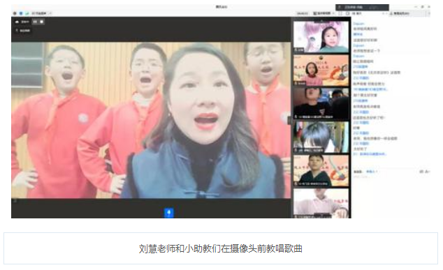 来自温州市少艺校的林轩印、戴嘉乐、姜莱、刘奇翰、陈冠廷五位同学作为刘慧老师的“小助教”,带领年纪相仿的海外朋友们练习发声技巧以及《草》《北京欢迎你》的学唱。中外学子通过云端视频连线的方式成为“同班同学”,促成了中西文化与艺术的跨国交流。