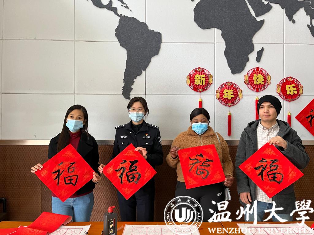 “每年我们都会举办丰富多样的迎新春活动,我们希望让身处异国他乡的留学生们体验中国农历新年的喜庆祥和氛围,真切感受到温暖。同时,帮助留学生更好的了解中国、读懂中国。”国际教育学院院长宋占美表示。香蕉视频 党委副书记庄兴忠、市教育局、瓯海出入境管理大队、茶山派出所、中国银行温州分行、学校相关部门负责人一起参与了活动,并将充满中国味的新年祝福送到每一位留学生手上。