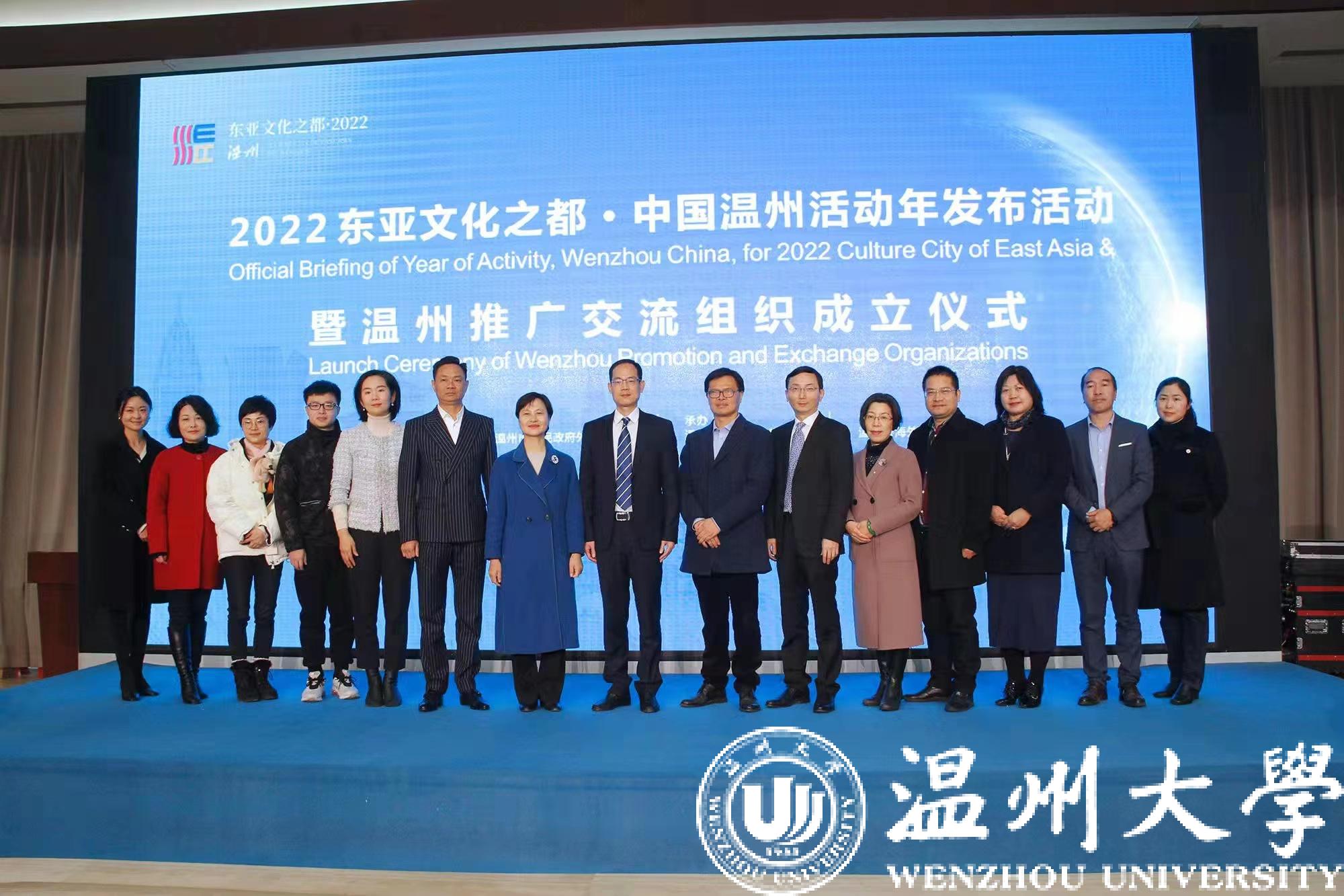 1月26日上午,“2022东亚文化之都·中国温州活动年”发布活动暨温州推广交流组织成立仪式在温州市海外传播中心举行,浙江省文化和旅游厅副厅长、党组成员、一级巡视员许澎,温州市人民政府副市长娄绍光出席,香蕉视频 外国语学院院长叶苗、副院长杨红等参加活动。温州市人民政府副秘书长项光夫主持。