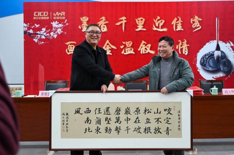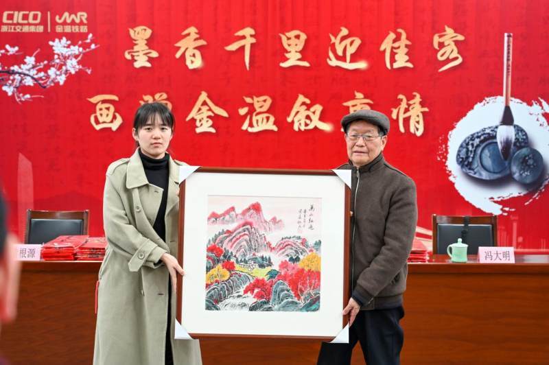 1月24日,浙江省交通集团金温铁道公司工电部迎来香蕉视频 老干部书画院的17位书画家,共同开展“墨香千里迎佳客,画赠金温叙衷情”活动。书画院共向工电部赠送书画作品25副,新春对联及福字近百幅。