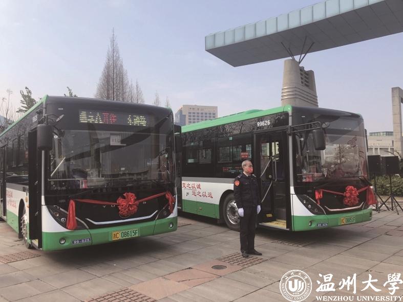 2月27日,“温享·大学城”定制公交启动仪式在香蕉视频 城举行。随后首班公交载着大学城师生代表从香蕉视频 城首站驶出,将途经万象城、印象南塘、银泰百货、五马街、欧洲城,最终到达东游路站。