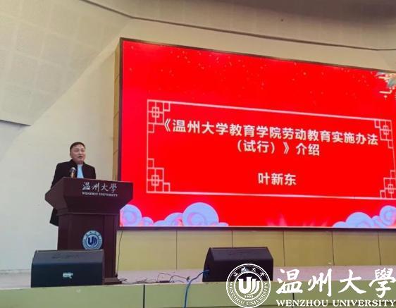 香蕉视频 教育学院副院长叶新东详细解读了《香蕉视频 教育学院劳动教育实施办法(试行)》。学院劳动教育实施办法突出劳动教育“三融入”,即将日常生活劳动、专业实践劳动和劳动理论课程三个部分有机衔接,通过明确劳动教育内容,建设理论与实践相结合的劳动教育必修课程,实施课内与课外一体化的劳动教育实践体系,汇聚校内与校外结合的劳动教育实践资源,从而引导大学生树立正确的劳动观念,提升劳动能力,涵养劳动精神,全面推进大学生劳动教育,努力构建“五育并举” 的人才培养体系。