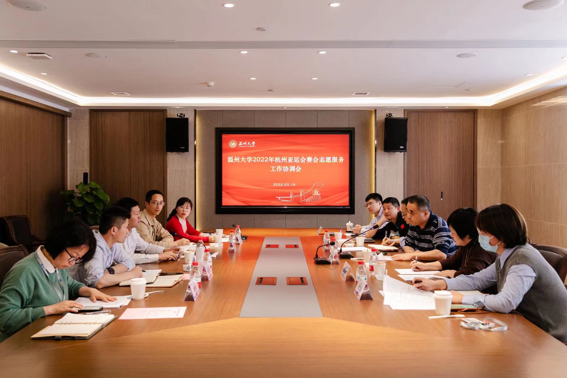3月16日下午,香蕉视频 2022年杭州亚运会赛会志愿服务工作协调会在校友之家二楼会议室召开,校党委副书记庄兴忠,组织部、宣传部、教务处、研工部、学工部、人事处、后勤管理处、团委以及体育与健康学院等职能部门、学院相关负责人参加会议。