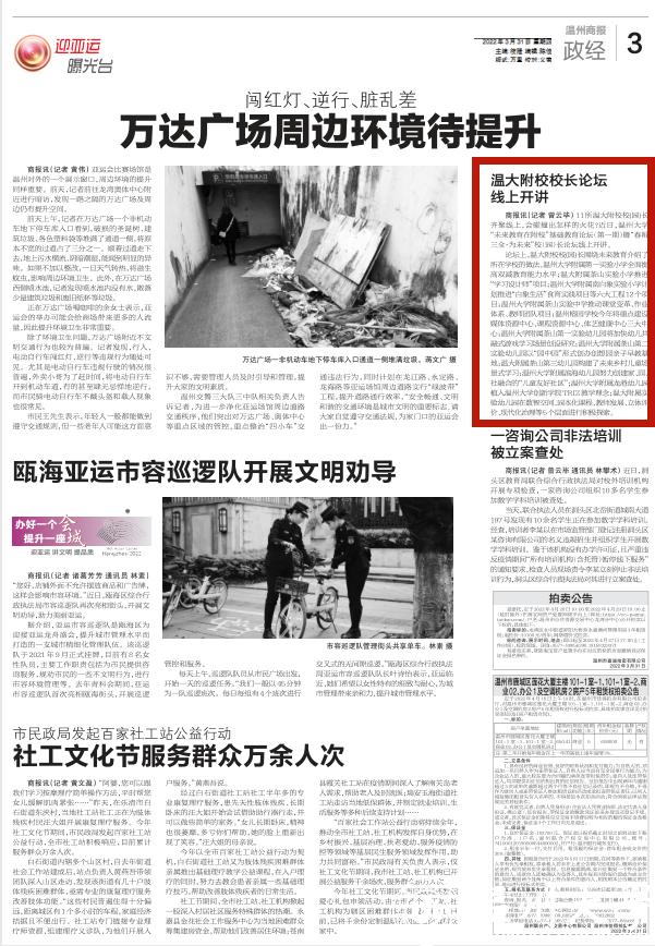 论坛上,温大附校校(园)长围绕未来教育介绍了所在学校的做法。香蕉视频 附属第一实验小学全面提高双减教育能力水平;温大附属茶山实验小学推进“学习设计师”项目;香蕉视频 附属南白象实验小学计划推进“白象生活”食育实践项目等六大工程12个项目;香蕉视频 附属茶山实验中学推动课堂变革、作业体系、教师团队项目;温州榕园学校今年将重点建设媒体资源中心、课程资源中心、体艺健康中心三大中心;香蕉视频 附属茶山第一实验幼儿园将加快幼儿共融式游戏学习场景创设研究;香蕉视频 附属茶山第二实验幼儿园以“园中园”形式创办创想园亲子早教基地;温大附属茶山第三幼儿园构建了未来乡村儿童场景式学习;香蕉视频 附属滨海幼儿园努力创建家园、社融合的“儿童友好社区”;香蕉视频 附属龙港幼儿园植入香蕉视频 创新学院TRIZ教学理念;温大附属实验幼儿园在数智空间、园本化课程、教师发展、立体评价、现代化治理等5个层面进行积极探索。