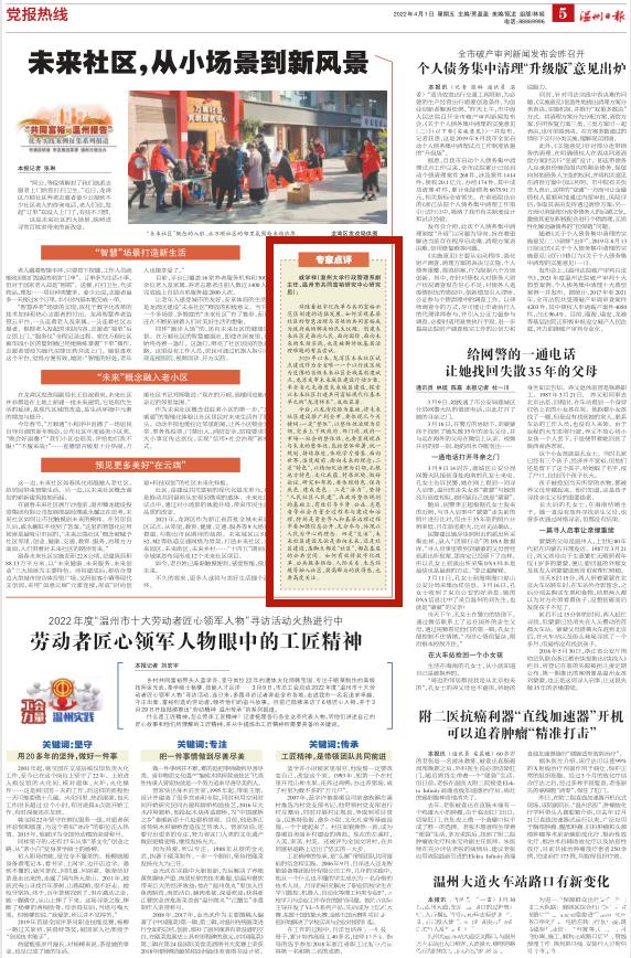 2020 年以来,龙湾区未来社区试点建设作为全省唯一一个以行政区域为范围的省级未来社区全域类创建试点,龙湾发布未来城区建设行动方案,率全省之先推进未来城区建设,探索以未来社区打造共同富裕现代化基本单元的“龙湾样本”,成效显著。