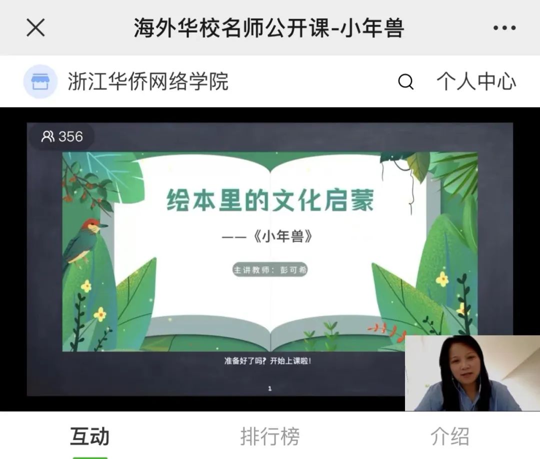 开营仪式结束后,彭可希为大家带来《海外华校名师公开课-小年兽》直播课程,正式拉开此次网上营的帷幕,精彩纷呈的课堂内容得到海外营员与家长们的阵阵好评。