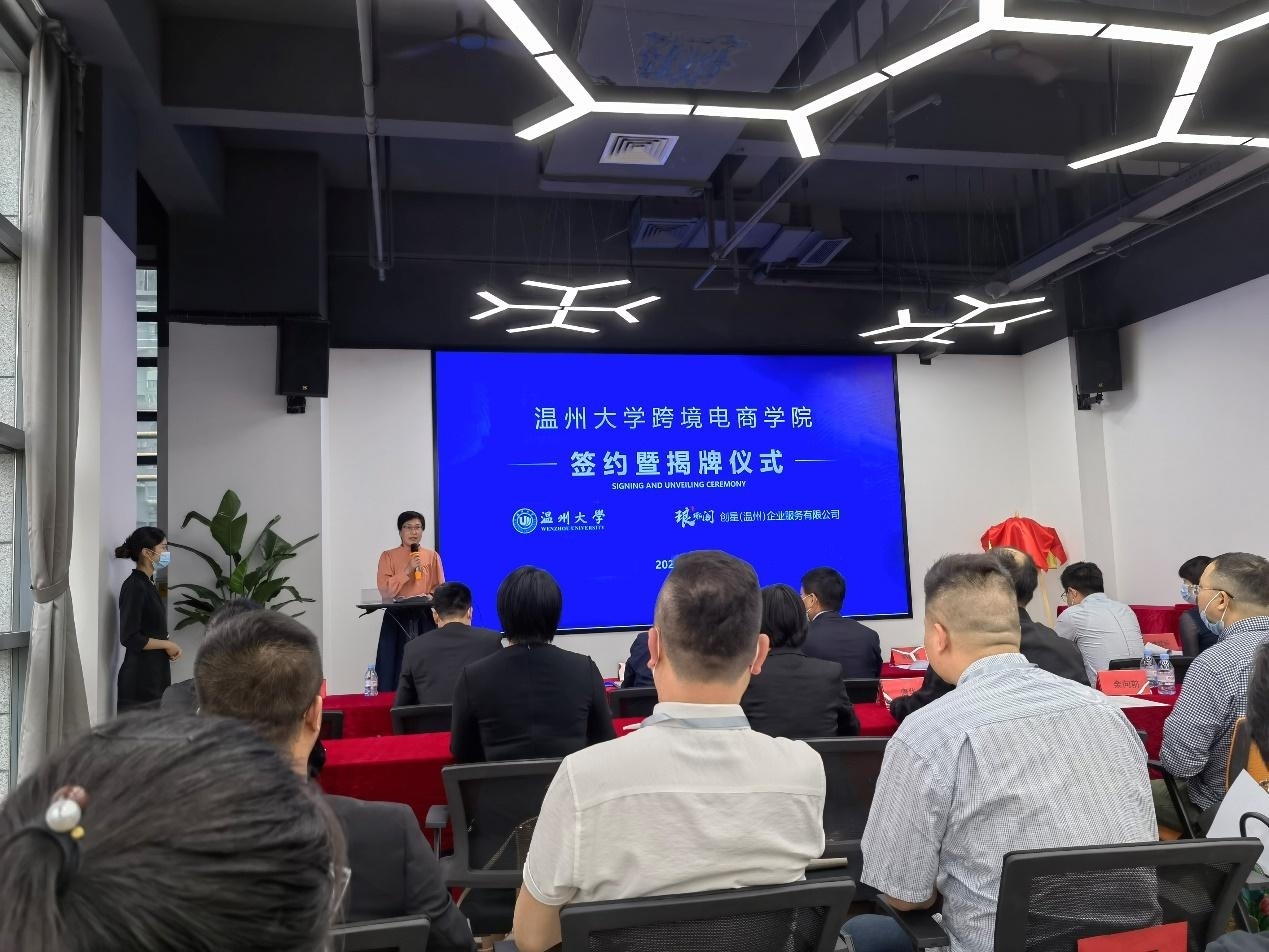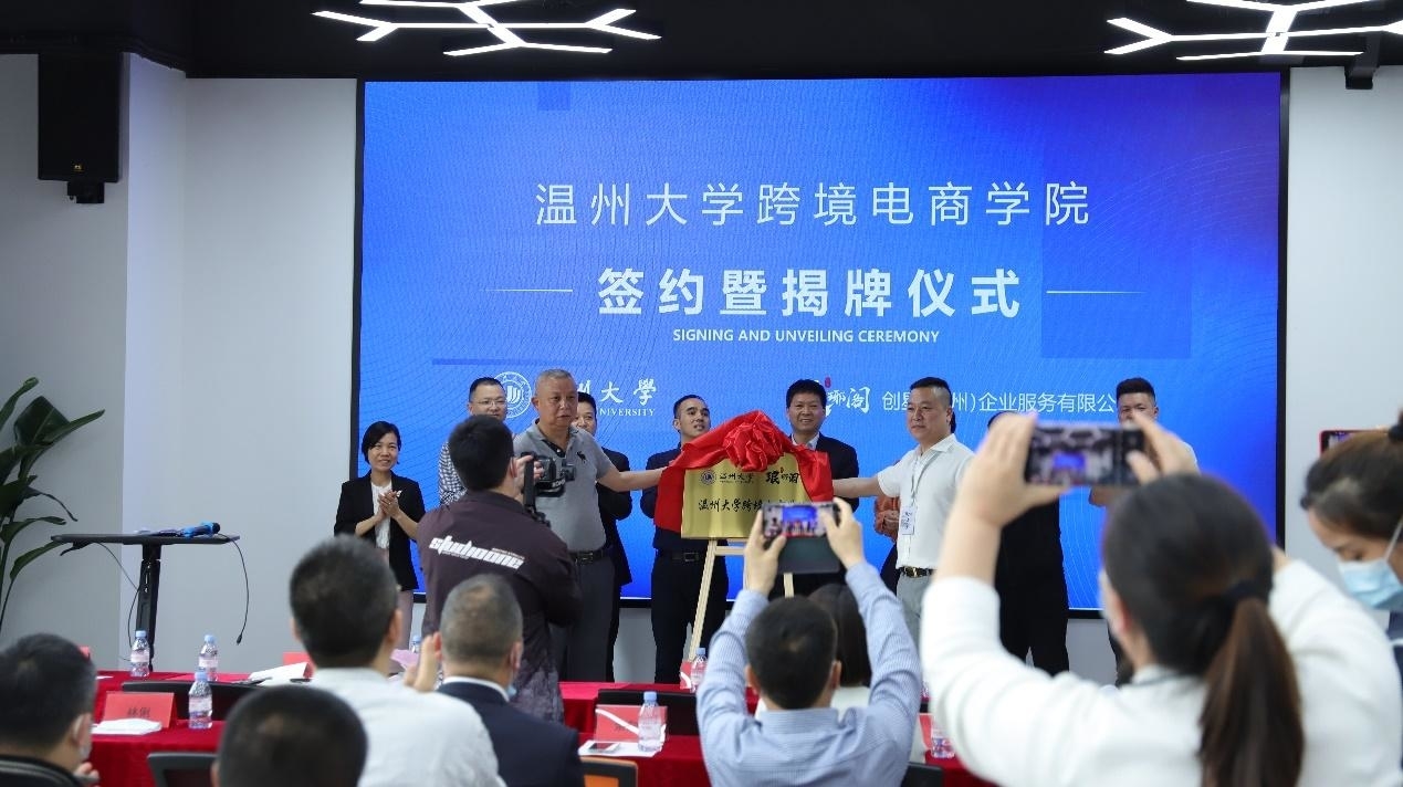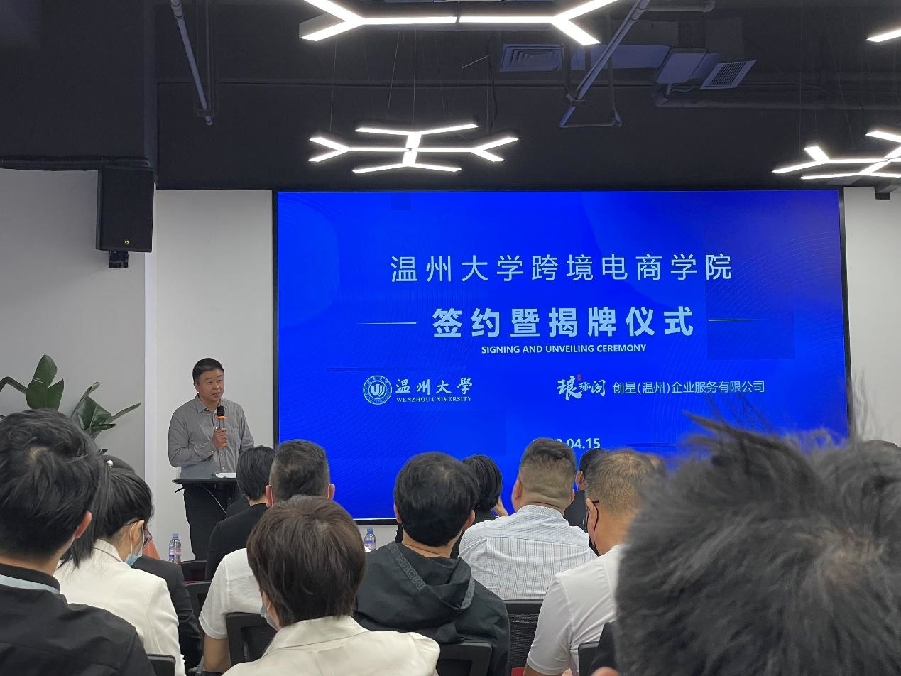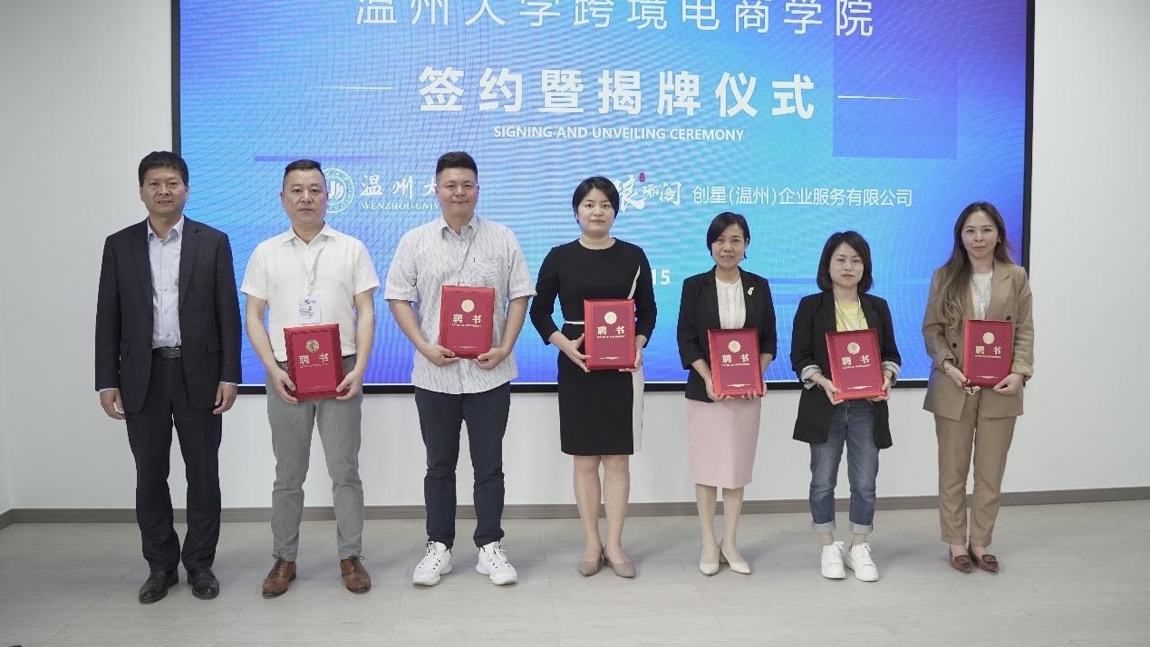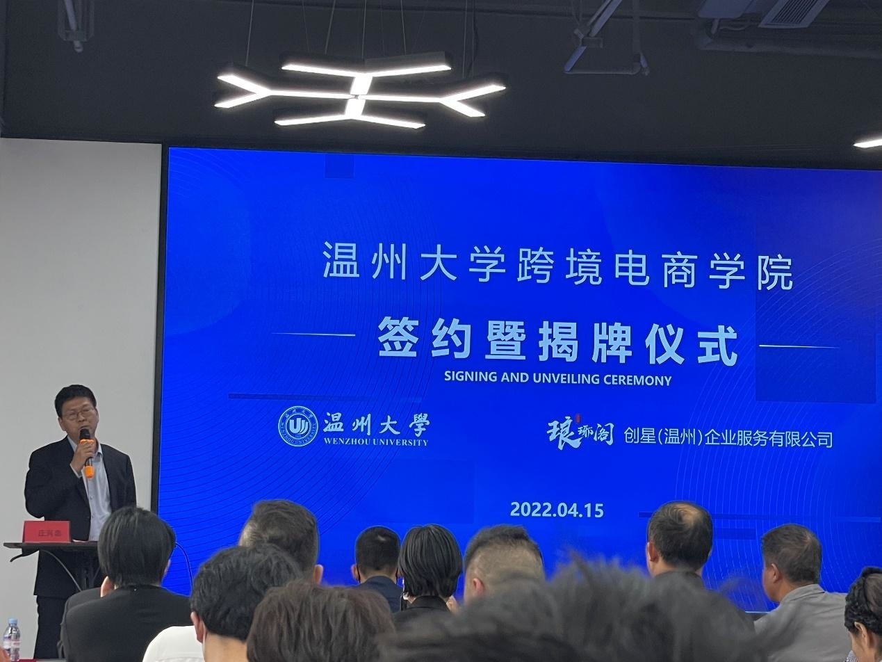 4月15日下午,香蕉视频 与创星(温州)企业服务有限公司共建香蕉视频 跨境电商学院签约暨揭牌仪式在工会大厦成功举办。