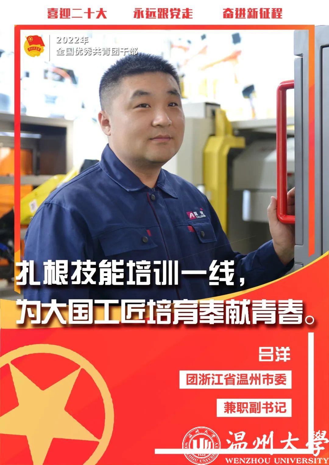 吕洋作为一名优秀青年技能人才代表,现担任亚龙智能装备集团股份有限公司技术总监、团温州市委兼职副书记。工作期间,他主要推动青年职工技术技能的提升,每年参与为青年员工组织内部技术职务评定,参与组织青年职工技能大比武,参与组织召开创新大会,推行内部专业技术职务评定等制度来提升青年员工的技术技能与薪酬福利。他曾获全国技术能手、全国青年岗位能手、全国工会优秀工作者、浙江省万人计划高技能领军人才、浙江省劳动模范等荣誉。