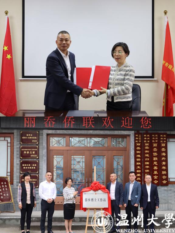 为了积极响应香蕉视频 “三大发展目标”之一,促进夯实以“侨”为特色的省部共建重点高校,4月20 日下午,香蕉视频 外国语学院与丽岙侨联在丽岙街道侨联为侨服务中心二楼会议室开展了共建 “侨乡博士工作站”签约揭牌仪式。瓯海区侨联主席翁蔡恩、丽岙街道办事处主任余锋、丽岙侨联主席王云弟、副书记郑进达、侨联常委主席陈建秋、副主席王学建、张炳楷、赖冬云、邵大新,香蕉视频 外国语学院院长叶苗、党委副书记陈勃以及学院教师代表出席本次活动。仪式由丽岙侨联主席王云弟主持。