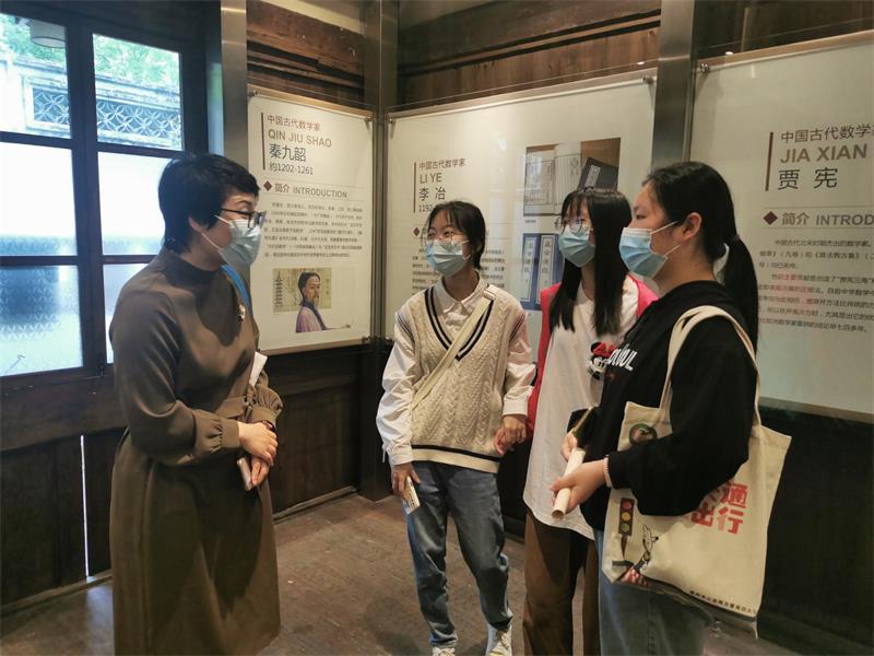 为了响应国家这一号召,我们思考并挖掘《学前儿童数学教育》这门课程的思政元素。我们制定了这门课程的思政育人目标之一——传承科学精神:课程中融入数学家的故事,让学生了解数学家的故事和精神,培养学生求真、严谨、质疑、进取、奉献的科学精神。为了达成这一思政目标,2022年4月27日,香蕉视频 学前教育系李娟教授和曹娟老师带领香蕉视频 20学前教育本科班的同学前往温州数学家名人馆瞻仰。