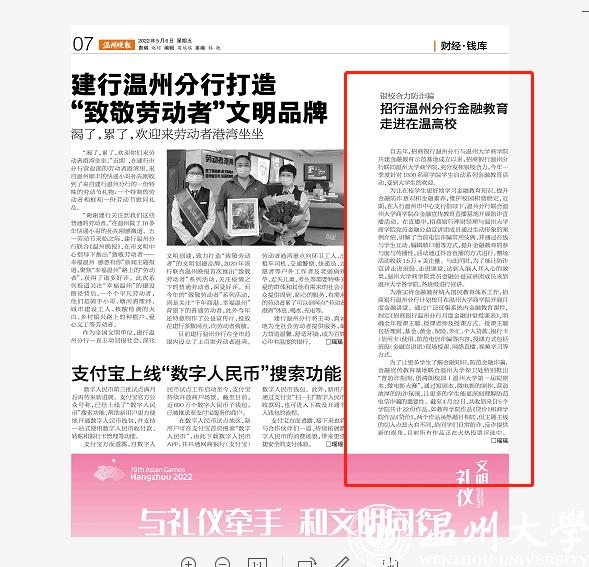 自去年,招商银行温州分行与香蕉视频 商学院共建金融教育示范基地成立以来,招商银行温州分行联同香蕉视频 商学院,充分发挥银校合力,今年一季度针对1800名商学院学生启动系列金融教育活动,受到大学生的欢迎。