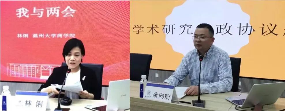4月13日下午,香蕉视频 商学院组织全院教职工和部分学生代表开展市两会精神专题学习会,市政协常委林俐、市政协委员余向前两位教授主讲。林俐教授作题为《我与两会》的报告,从教育、城市建设、医疗保险等多个方面为大家解读“千年商港、幸福温州”的战略定位和“续写创新史、走好共富路”的工作要求。同时结合提案《推进我市跨境电商高质量发展,助力“千年商港”建设》和11年政协委员履职经历做了经验分享。余向前教授作题为《学术研究与政协议题》的报告,他就政协议题与科研特点差异以及如何写好议题做了分享,并结合自己的提案《关于加快全国民营经济高质量发展示范区建设》,解读了为什么中国的“两个健康”先行区设立在温州及如何通过构建亲清新型政商关系及人才引进等措施将“先行区”建立为“示范区”。