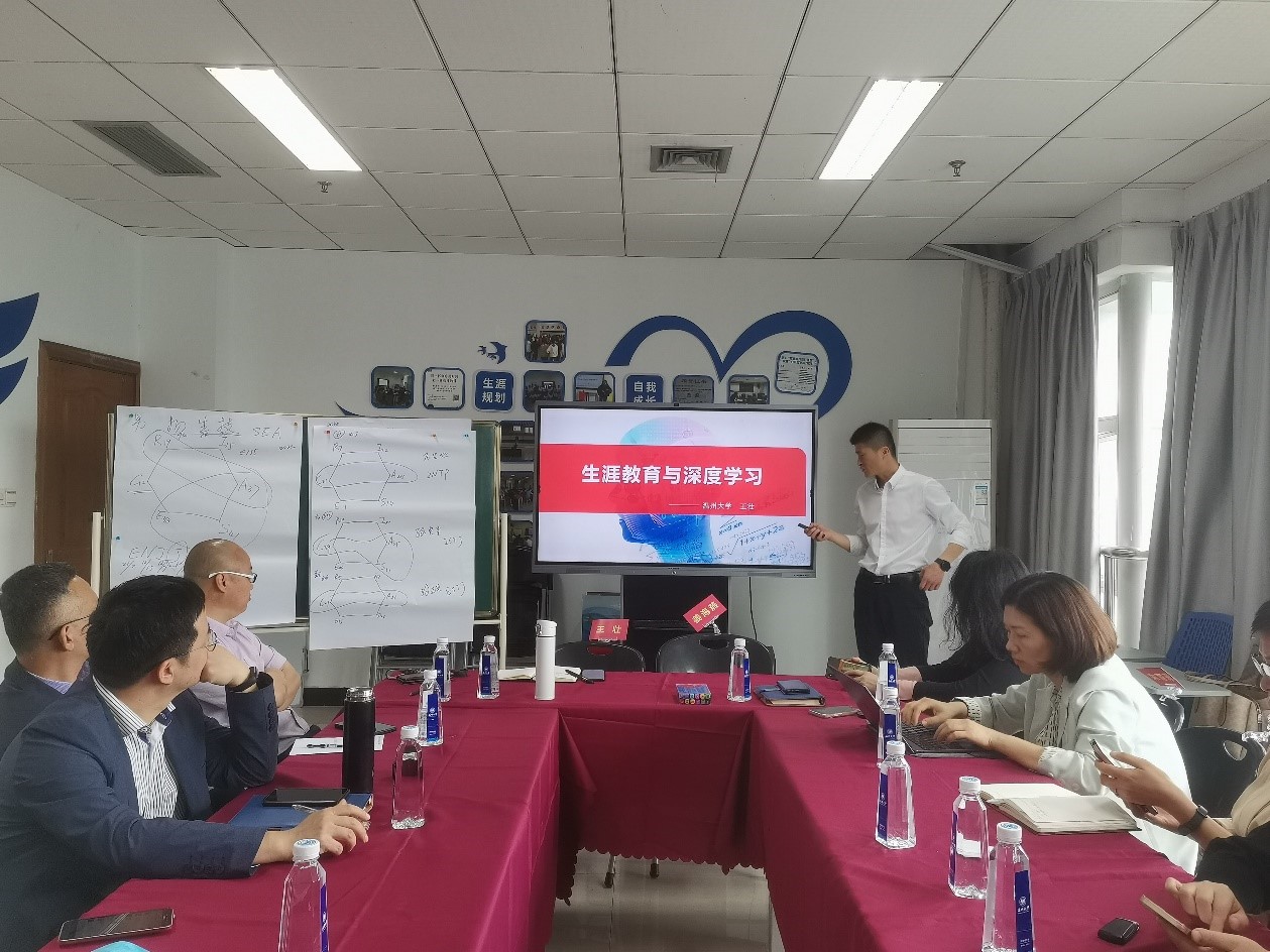 紧接着,生涯教育中心成员、香蕉视频 学工部副部长王壮做题为《生涯教育与深度学习》的专题报告。他首先抛出三个问题:生涯教育为何?生涯教育何为?生涯教育何效?引发大家思考。随后,他围绕自身长期的课堂教学实践,结合三个案例,即MBTI小组讨论、简历三字经、以及三国人物的生涯启示,从而实现在生涯教育中引入深度学习的理念,让学习者根据自己的学习兴趣和需求,在理解的基础上主动的、批判性的学习新思想和知识,运用多样化学习策略来深度加工知识,构建个人知识体系并有效迁移。采取深度学习法在职业生涯规划咨询案例中实现融会贯通,帮助学生更加客观全面的看清过去、现在和未来,聚焦问题、发现机会、澄清路径、找到出口,在知识层面和技能层面进行深加工,形成学习共同体(创新教育者、合作学习者、高效学习者),更加有效推进生涯教育深度思考、深度学习。