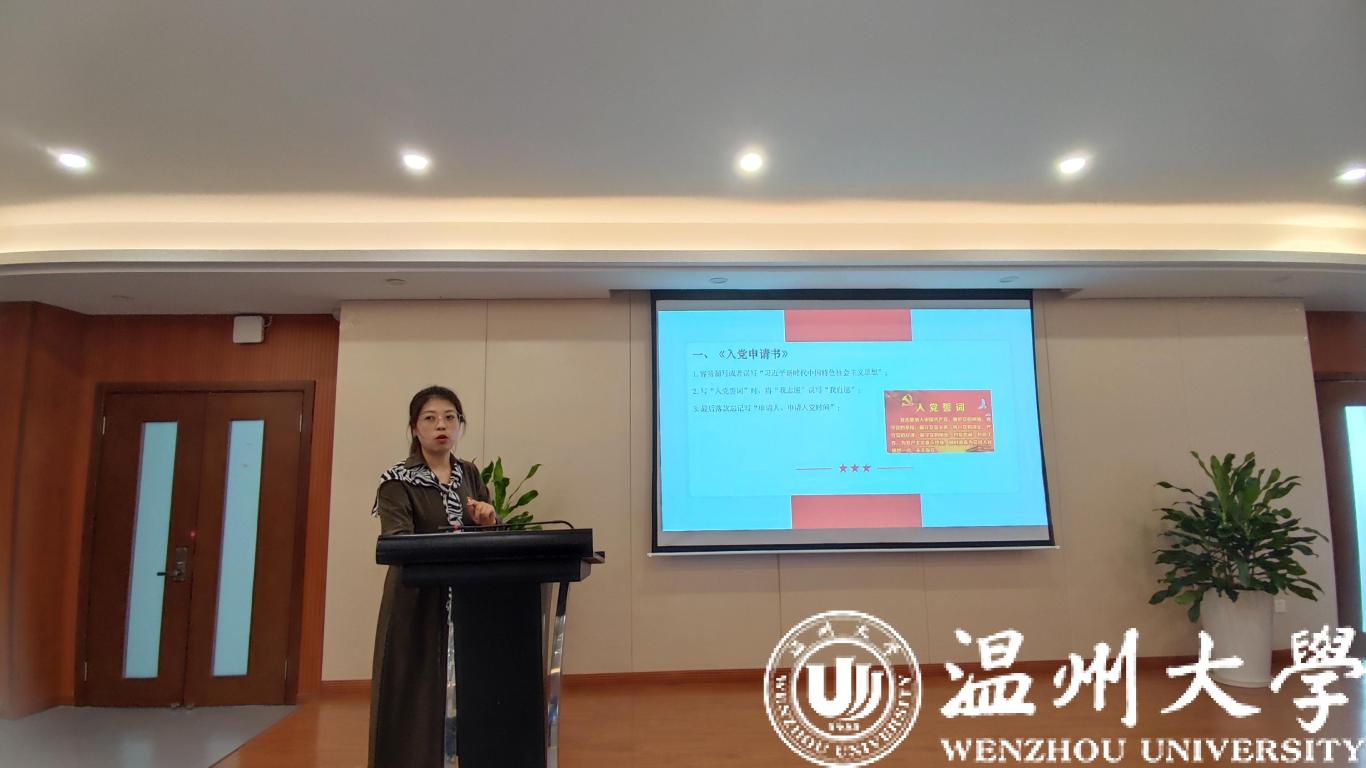 作为组织员,方乐平老师首先说明了在和党员谈话中发现的一些问题;然后强调入党志愿书的重要性,提醒各支部在必须要严、细、全;最后希望各支部委员在工作过程中,提高服务意识,做好表率。杨奇老师向各支部详解介绍了香蕉视频 发展要求,从入党申请人到转为正式党员,每个环节需要把握的重点,大家要相互学习,把握好党员发展的全过程。史凤娟老师根据上级党组织反馈的情况和日常工作中发现的问题,各支部不仅要把工作做完,更要把工作做好。最后由研究生第一党支部姚旭凯介绍了如何打造支部特色、本科生第三党支部傅镜霏分享了从共青团员到共产党员的成长历程。