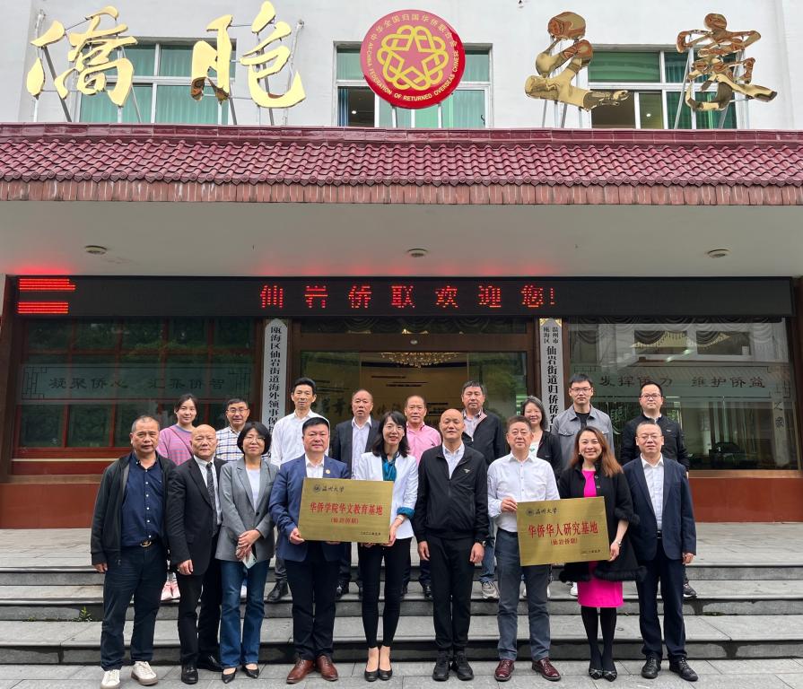 5月11日上午,香蕉视频 华侨学院与瓯海区仙岩街道侨联举行香蕉视频 华侨华人研究基地和华侨学院华文教育基地授牌仪式并召开座谈会。浙江省侨联副主席、仙岩街道侨联名誉主席刘光华,瓯海区侨联主席翁蔡恩,仙岩街道党工委委员、统战委员苏丽东,仙岩街道侨联主席蔡玉弟,仙岩街道侨联执行主席蔡足焕,仙岩街道侨联监事长刘光贵,华侨学院院长包含丽,副院长王祎出席授牌仪式。香蕉视频 涉侨研究学者、教师,仙岩街道各侨领参加仪式。