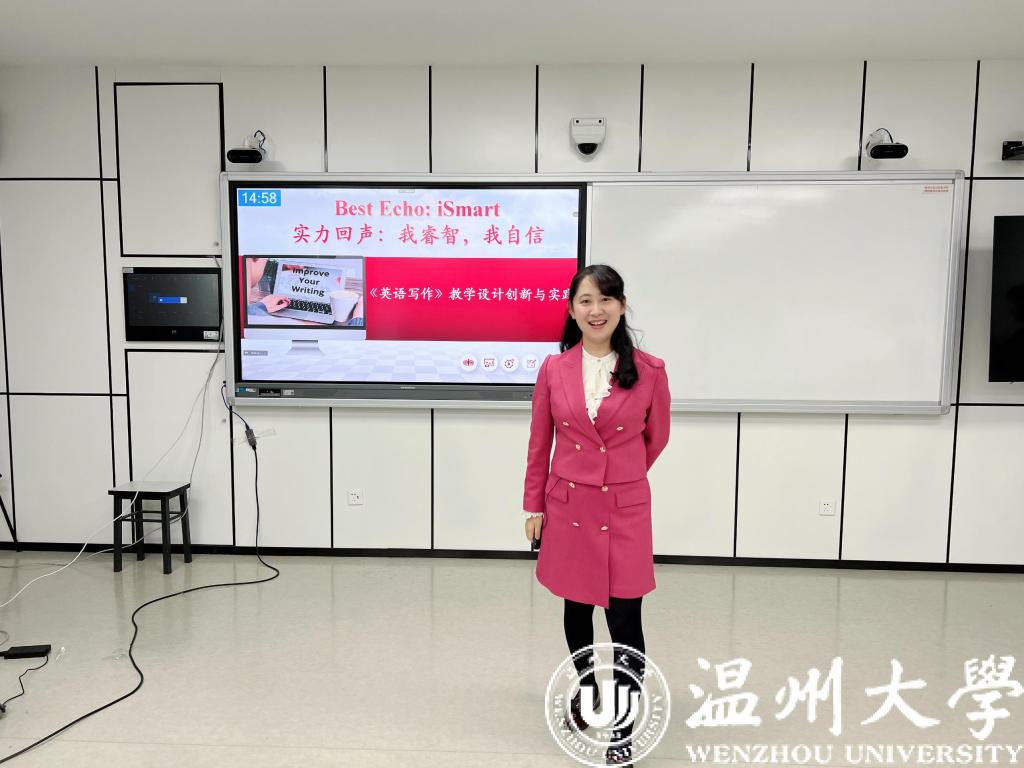 大赛历经层层选拔,童芳莉以其过硬的政治思想素养、优秀扎实的教学能力、丰硕的教学成果、独具创新的英语写作ECHO教学理念,过关斩将,以大组网评第一的好成绩,成功入围省决赛。