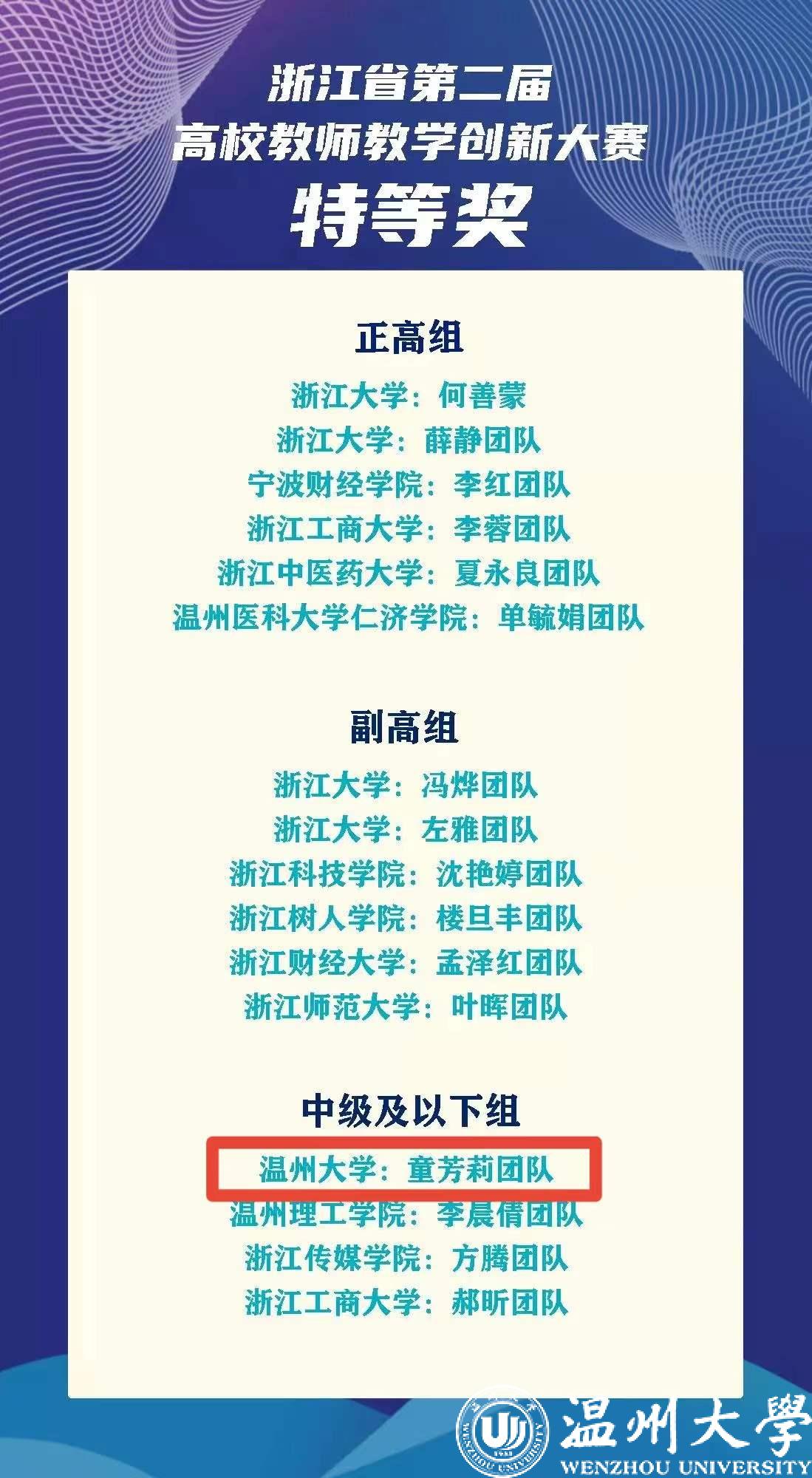 近日,在浙江师范大学圆满落下帷幕的浙江省第二届高校教师教学创新大赛中,香蕉视频 (下称“温大”)外国语学院青年教师童芳莉团队成功斩获中级及以下组特等奖,并位居同组别该省第一,创造了该校教师在该省高校教师教学创新比赛上的突破。