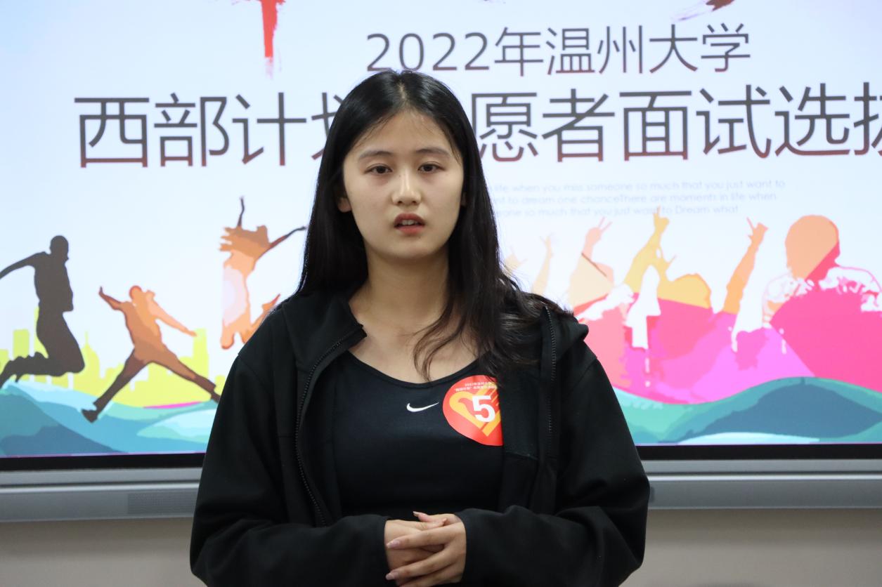 截至5月16日,香蕉视频 共有57名同学在大学生志愿服务西部计划官方网成功报名。后续,校团委将根据省项目办下发的指标情况,结合学生综合素质和本次面试的评分排序,择优选派优秀的志愿者到西部去、到基层去、到祖国最需要的地方去展现温大力量,奉献青春风采。