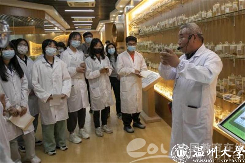 当学生们移动到一罐并不起眼的软体动物标本面前,张永普教授停下了脚步,拿起了它并自豪地向学生们介绍:“虽然看起来不怎么样,但吃过的人都知道它非常‘可口’,所以当我们的首任系主任叶正昌先生和他的老师陈义在1958年第一次于温州一处滩涂发现它的时候,将其定名为‘可口革囊星虫’,这也是当年他们亲手制作的标本。我们温州人叫它泥蒜,泥蒜冻可是非常可口的。”