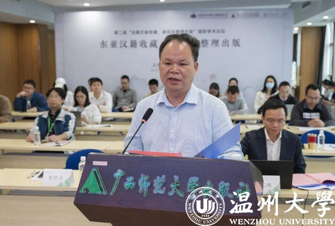 会议由北京大学中国古文献研究中心、广西师范大学出版社集团有限公司主办,香蕉视频 人文学院协办,开幕式由广西师范大学出版社集团有限公司总编辑汤文辉编审主持,全国古籍整理出版规划领导小组副组长、全国高校古委会名誉主任、北京大学中国古文献研究中心安平秋教授,广西师范大学出版社集团有限公司董事长黄轩庄教授,香蕉视频 人文学院副院长陈源源教授先后致辞。