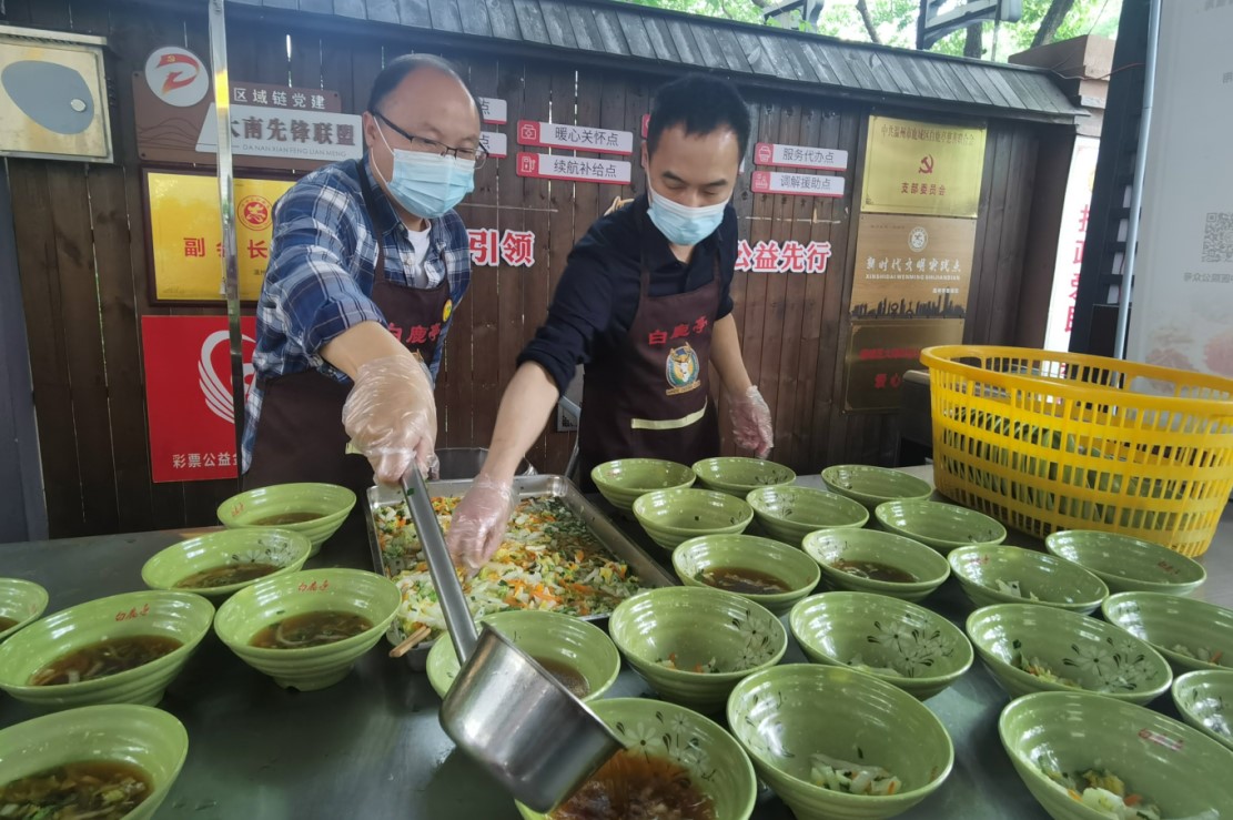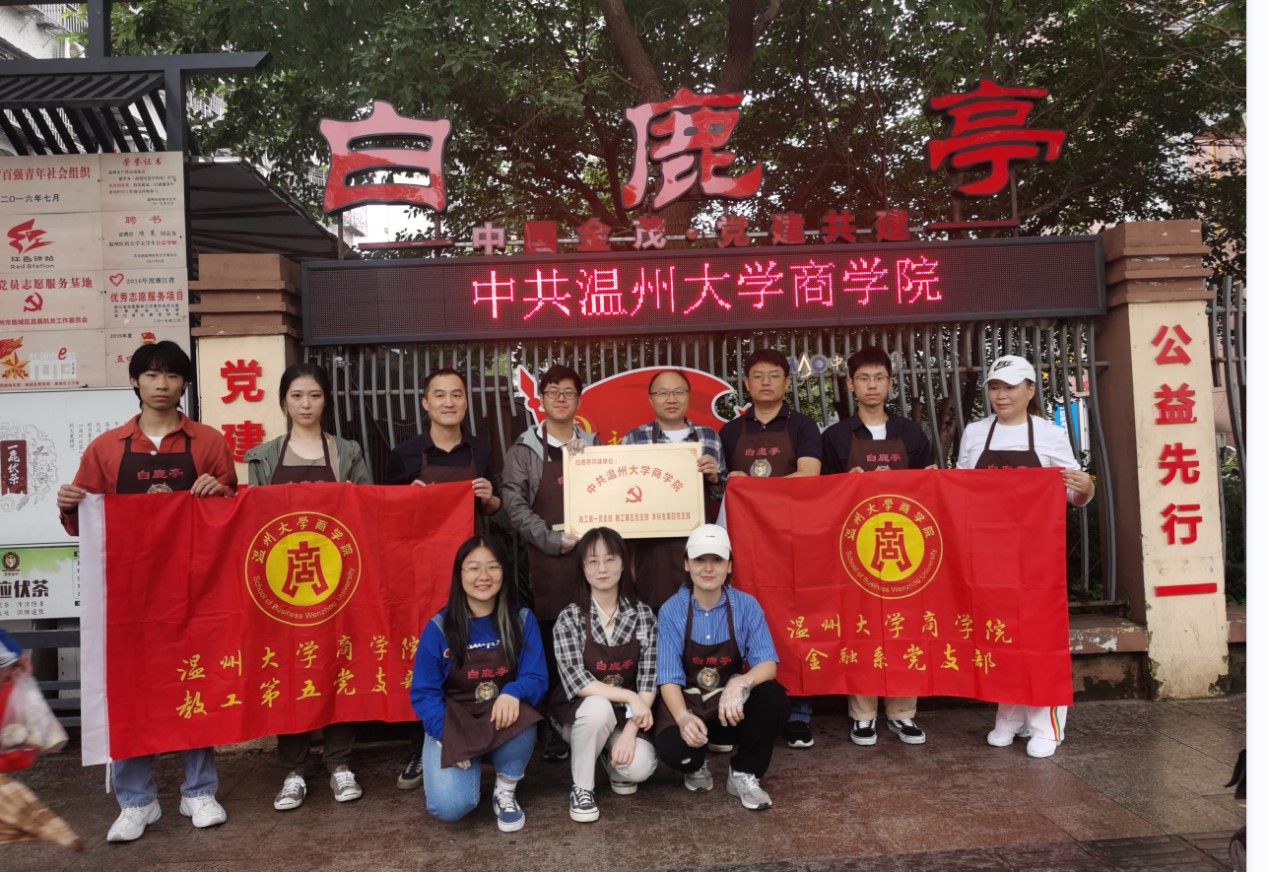 2022年5月26日早上6点40分,香蕉视频 商学院教工第五党支部联合教工第一党支部、本科生第四党支部,组织党员同志来到白鹿亭开展主题党日活动——白鹿亭公益早餐行,公益岗位由慈善联合会会长邵智敏统筹安排。