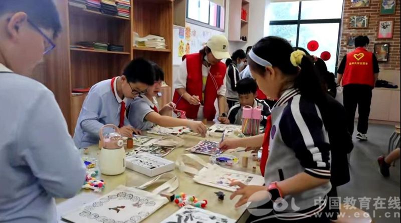 “相传在温州建城时,有一只白鹿衔花跨城而过,温州城到处鸟语花香......”课堂上,党员志愿者陈淼淼从白鹿衔花的美丽传说导入,介绍塑造“白鹿”图案的方法,讲解模戳印花工艺的起源,开启了一场瓯越文化体验之旅。调色、打底、印染、勾边、上色,在志愿者们指导下,一个个创意十足,富有文化味道的帆布包呈现在眼前。“这个包不仅好看、别致,还可以用来日常装东西呢,这是我收到的最有意义地六一儿童节礼物。”来自四(2)班的项瑞磊拿着自己“专属”的帆布包兴奋地说道。