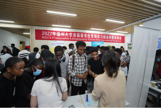 本次实习就业供需洽谈会吸引了登高电气有限公司、浙江洲一铝业有限公司、森马协和国际学校等8家在温企业,提供销售人员、工程师、学科教师、咖啡培训师、新媒体运营等60余个岗位。来自津巴布韦、埃塞俄比亚、坦桑尼亚等70多个国家的150余名在校国际学生参加了本次活动。