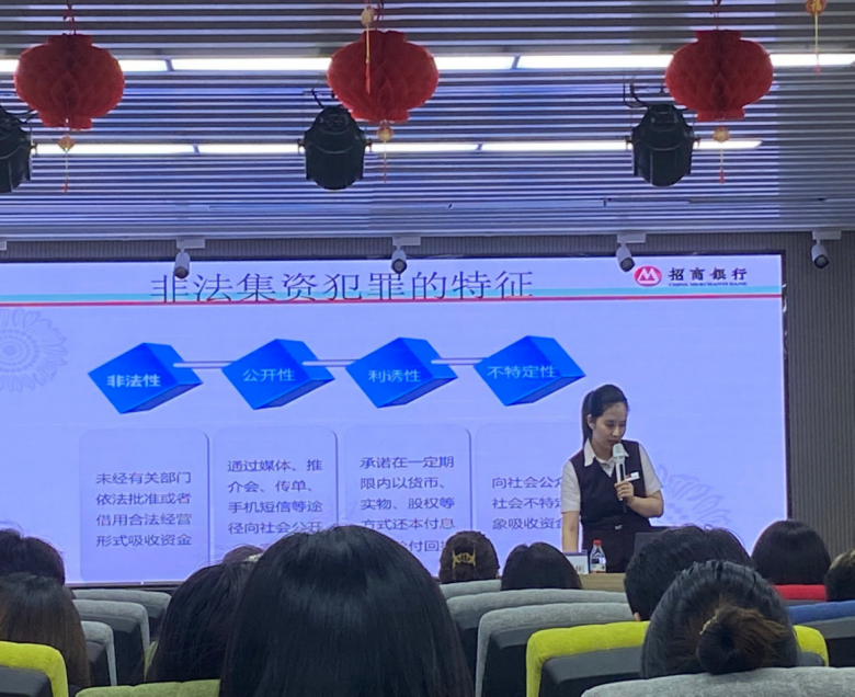 入高校开展大学生客群宣传。前期,招商银行温州分行在香蕉视频 商学院建立金融教育示范基地,在防范非法依次宣传月活动期间,温州分行对接香蕉视频 商学院,开展以“守住‘钱袋子’ 护好幸福家”为主题的金融知识讲座,通过提前报名的形式,共有80余名学生报名参加金融讲座。温州分行金融讲师通过深入浅出的讲解,向学生普及了非法集资的基本概念、犯罪特征以及社会危害,并详细介绍了学生被骗参与非法集资的典型案例,让学生了解到非法集资的特征以及危害性。