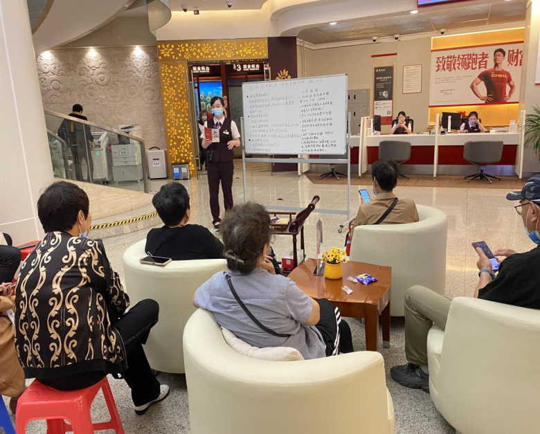 围绕中老年客户开展厅堂微沙龙活动。针对55周岁以上中老年客户等特殊人群,招商银行温州分行营业部开展了以“拒绝非法集资 谨防金融诈骗”为主题的网点微沙龙活动。活动当天,网点工作人员精心准备了各类茶点及小礼物,过现场视频观看以及微沙龙的讲解,向在场客户介绍了防范非法集资的典型案例以及防范电信诈骗的安全提醒,告知客户“莫信天上掉馅饼,守住你的‘钱袋子’”。