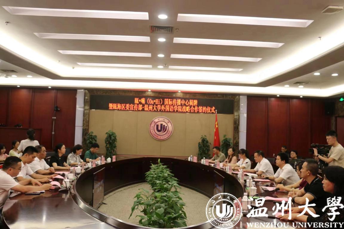 6月30日下午,温州市首个“校地合作”海外传播中心——瓯•嗨(Ou•Hi)国际传播中心揭牌。瓯海区委宣传部与香蕉视频 外国语学院举行校地合作仪式。今后双方将通过深化合作实现校地资源共享和优势互补,助推文化瓯海和文明城市建设,进一步提升温州城市形象。温州市委宣传部副部长魏平生,香蕉视频 党委委员、副校长潘玉驹,瓯海区委常委、宣传部长孟晓晨参加仪式。