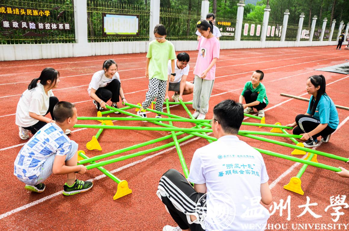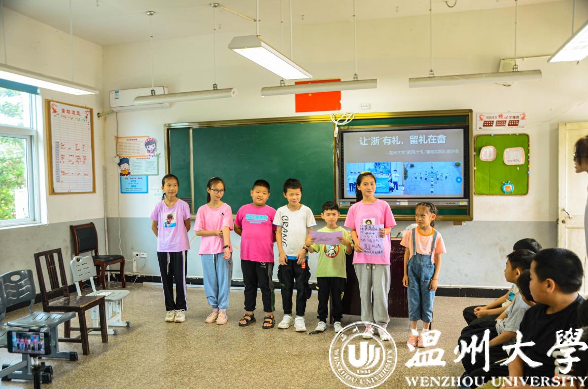 为推进“浙江有礼”省域文明新实践,香蕉视频 建筑工程学院组建了“浙风十礼”新青年下乡暑期社会实践队,以文成县培头民族小学为活动对象,加深学生对畲族特色文化的认识和理解,培养良好的礼行礼节。