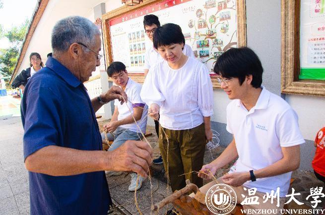 畲族历史悠久,文化资源丰富,但随着现代文明的崛起,腰带刺绣、衣饰刺绣、打银等传统文化正从生活日常中慢慢匿去,在历史的长河中渐渐淡出。为了留住即将消失的珍贵文化,学院特别邀请了村里唯一一位编草鞋的非遗继承人钟炳进老师为实践队的成员讲解草鞋的编法,通过实操将理论知识融入,给成员上了一堂真真正正的“文化课”。廊投下浅淡的阴凉,稻谷交织的韵律、草鞋扒和草鞋锤的敲打声编织成乐章,草鞋在老师傅饱经风霜的手中逐渐成型。此刻,实践队成员们体会到非遗文化的魅力,深刻感受到文化传承和发扬的重要意义,更感悟到了自己肩上的重担。