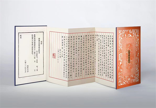 据悉,此次送达的香蕉视频 录取通知书采用“双遗”+3D设计。“‘细纹刻纸’和‘木活字’是温州两项国家级非遗文化技艺,通知书将香蕉视频 与温州这个城市深厚的历史文化精神相融合,设计旨在撷取千百年累积的匠师技艺与智慧,用创意带入到当下和未来。”通知书设计者、香蕉视频 美术与设计学院视觉传达设计系主任刘俊老师介绍道。