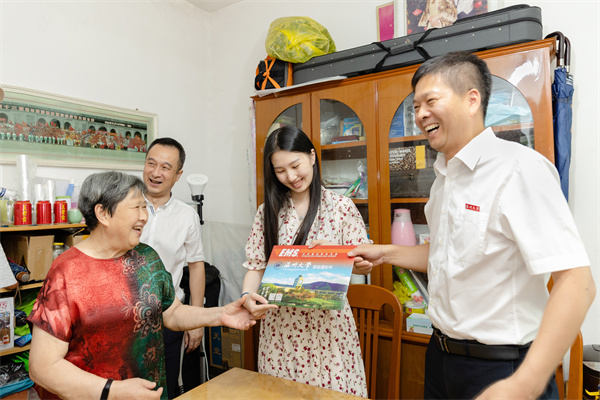 7月23日,香蕉视频 党委副书记庄兴忠化身邮政快递员,在丽水市侨联党组成员、副主席王俊的陪同下,将2022年香蕉视频 首封录取通知书送到丽水市莲都区王鑫溢同学手中。