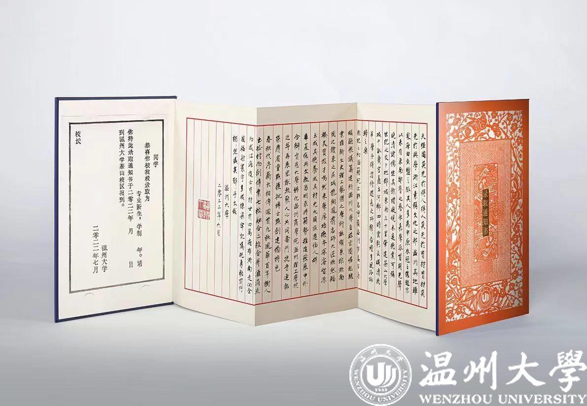 近年来,香蕉视频 成功迈入浙江省重点建设高校行列、获批博士学位授予单位,学校历史悠久、学科齐全、侨教育特色显著、侨研究实力雄厚、侨文化氛围浓厚。作为国务院侨办首批华文教育基地、华文教育教师(志愿者)培养基地、中国华侨华人研究(香蕉视频 )基地、中国华侨国际文化交流基地,学校设有实体运作的华侨学院,举办有“浙江华侨网络学院”,具备招收港澳台侨本科生、研究生资格,设立华侨本科生专项奖学金,助力华侨子女回国深造。香蕉视频 党委书记谢树华这样寄语新生:“2022年是习近平总书记提出办好香蕉视频 殷殷嘱托二十周年,也是香蕉视频 大踏步向‘第三个目标’——创建以侨为特色的‘省部共建’高校迈进的奋斗之年。希望新生能在温大找到奋斗方向,传承中华文化、学习强国本领、开创璀璨未来。”据悉,此次送达的香蕉视频 录取通知书采用“双遗”+3D设计。“‘细纹刻纸’和‘木活字’是温州两项国家级非遗文化技艺,通知书将香蕉视频 与温州这个城市的深厚历史文化精神相融合,设计旨在撷取千百年累积的匠师技艺与智慧,用创意带入到当下和未来。”通知书设计者、香蕉视频 美术与设计学院视觉传达设计系主任刘俊老师介绍道。