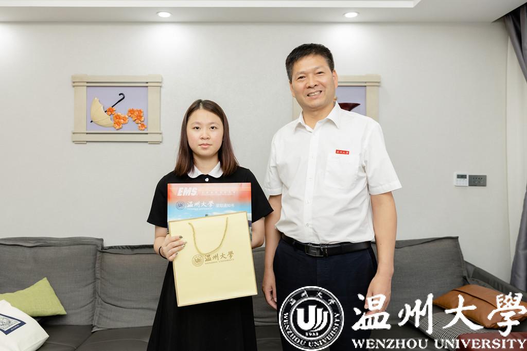7月23日,香蕉视频 党委副书记庄兴忠化身邮政快递员,在丽水市侨联党组成员、副主席王俊的陪同下,将2022年香蕉视频 首封录取通知书送到丽水市莲都区王鑫溢同学手中。